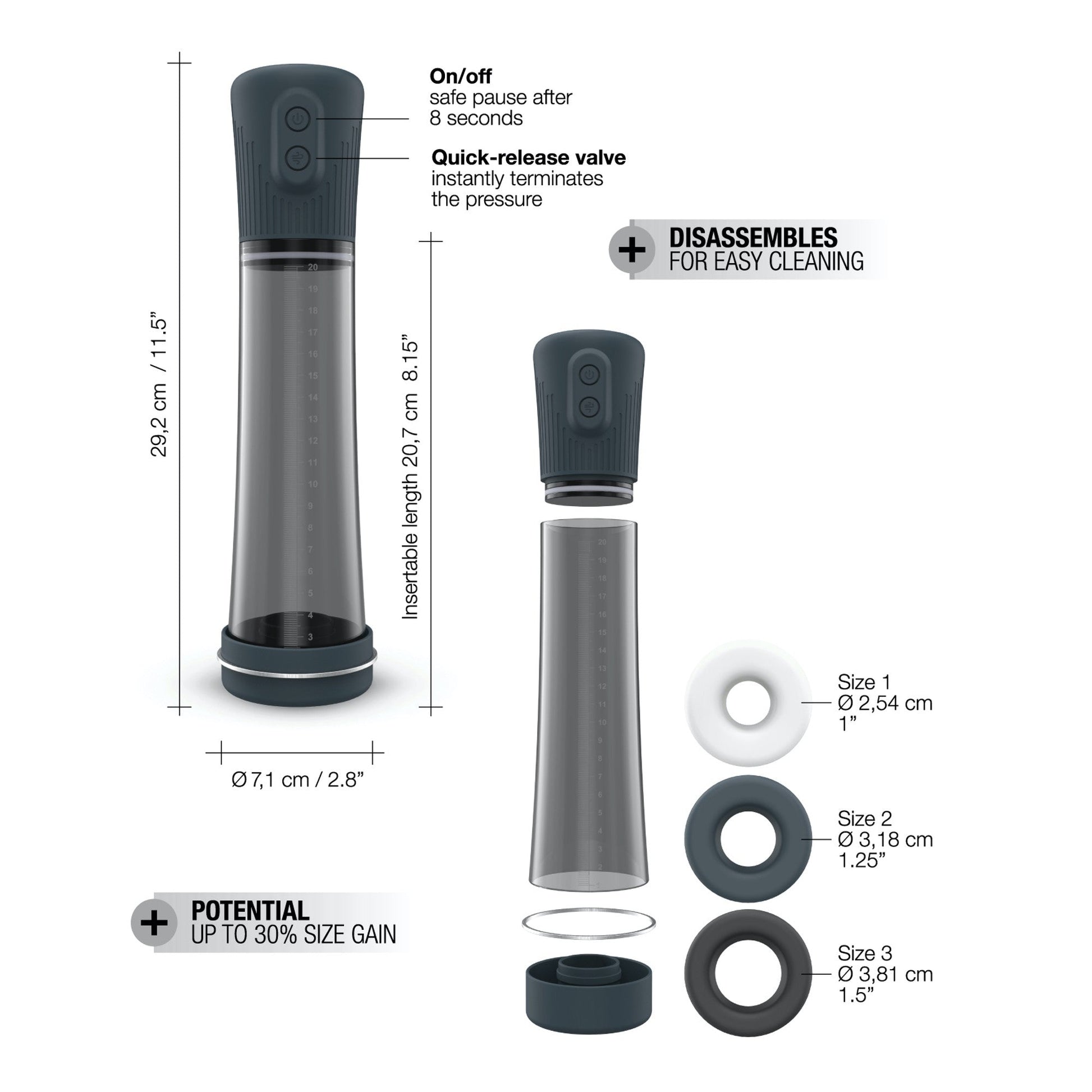- 2-in-1 penis pump : • Water pump • Air pump